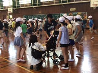 今日、5年生が、宮代特別支援学校に在籍する児童と一緒に学習を行いました。林間学校へ向けてキャンプファイヤーやダンスの練習を行いました。ダンスでは、上沖小の子供たちと一緒に体を動かして楽しむことができました。