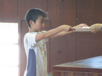 今日のおまけの活動は、手焼きせんべいの試し焼きです。焼きたてのせんべいはとてもおいしかったです。
