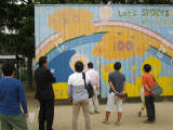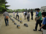 話し合いの後、作業場所の確認を行いました。次回(5/23)は、校庭のタイヤのペンキ塗りを行います。