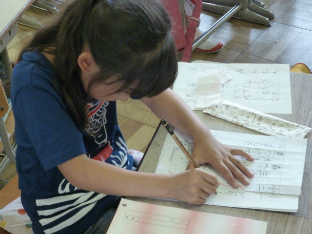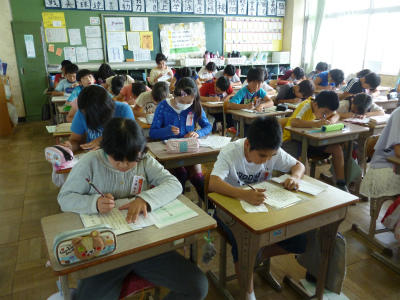 硬筆競書会が行われました。一言も声を発することなく、集中して取り組んでいました。(写真は6年生です。)