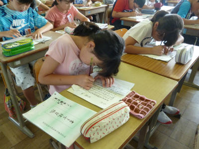 硬筆競書会が行われました。一言も声を発することなく、集中して取り組んでいました。(写真は6年生です。)
