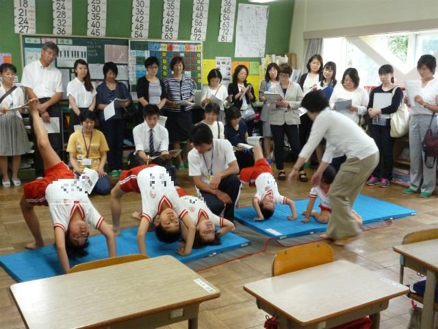 今日は、7組さんで研究授業がありました。市内のたくさんの先生方にご来校いただきました。子どもたちは少し緊張気味でしたが、体操、歌、演奏と、素敵な演技を披露してくれました。とてもよくがんばりました。