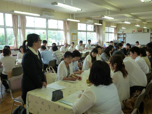 授業後には、県教育委員会、総合教育センター、東部教育事務所、市教育委員会から指導者をお招きし、研究協議が行われました。