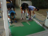 今回は、渡り廊下のペンキ塗りです。子供たちも参加し、みるみるうちにきれいに塗装されました。プレハブ倉庫の整理も行っていただきありがとうございました。