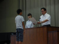 今日は全校朝会の前に、7月3日(日)に熊谷スポーツ文化公園陸上競技場で行われた県民総合体育大会の表彰がありました。10名の児童が参加し4名が入賞と嬉しい結果でした。