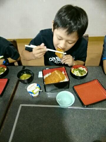 予定通り、ビアンデで昼食です。お腹と背中がくっつくくらい腹ぺこだった子供たち。かつ重を食べて満足。