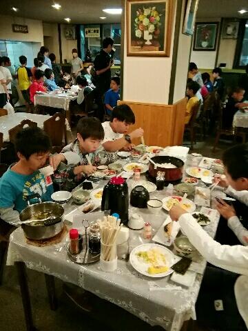子供たちは、よく寝て元気に朝を迎えました。今、朝食をモリモリ食べています。