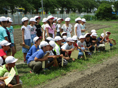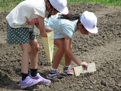 本市「花と緑の普及運動事業」の一環として、4年生が、一ノ割上根公園にコスモスの種まきをしました。公園緑地課の方から種の蒔き方を教えていただき、「大きくなあれ」「きれいに咲くように」と、思いをこめて一生けん命に蒔きました。公園一面にコスモスが咲くのを楽しみに待ちましょう。