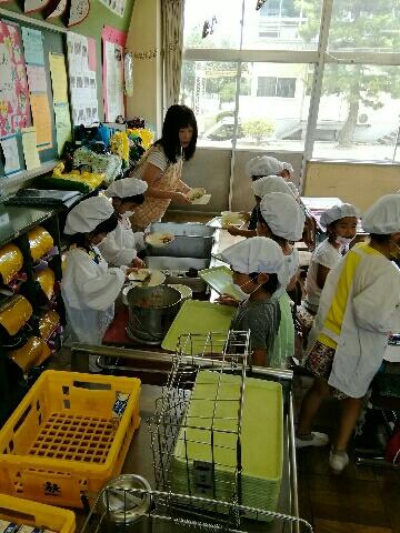 今日の給食は、七夕献立「七夕そうめん」と「七夕ゼリー」でした。星形の人参や星形のナタデココに子供たちも大喜びでした。「お医者さんになれますように」「ぬいものがぬえるようになりますように」「いつも上沖小が元気でいられますように」・・・子供たちの願いは様々ですが、一人一人が夢に向かって頑張れるよう手助けしていきたいと思います。