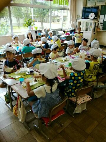 1学期もあと3日となりました。今日は、給食最終日です。1年生も上手に配膳できるようになりました。お楽しみは、シューアイスです。バニラ・チョコレート・ストロベリーからそれぞれ好みの味をセレクトしました。一番人気はチョコレート味でした。どの学級も楽しい給食の時間を過ごせたようです。