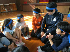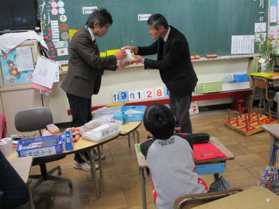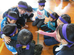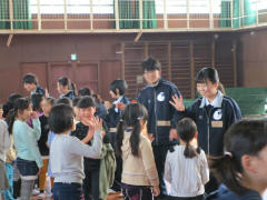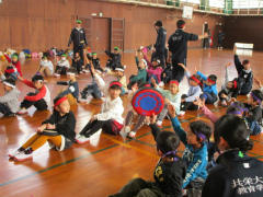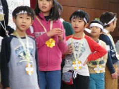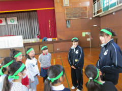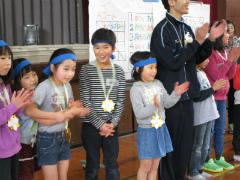 ブロック優勝した青チームと白チームには、共栄大学のお兄さんお姉さんから手作りのメダルをいただきました。また、学校には、フライングディスクを2枚いただきました。子供たちは、楽しいひと時を過ごし、とてもうれしそうでした。