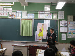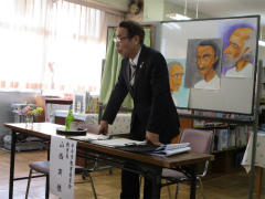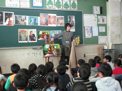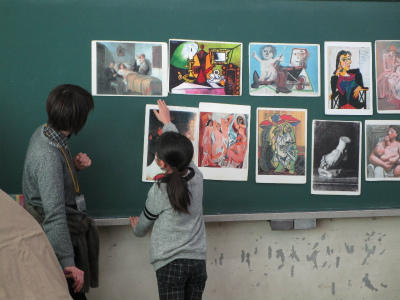 4年生が、県立近代美術館より講師をお招きして鑑賞教室を行いました。ピカソの人物像や絵画が描かれた時代背景、人によっていろいろな見方や感じ方があってよいということなどを学びました。子供たちは、色や構図、描材からたくさんのことを感じとり、心のつぶやきを発表しました。