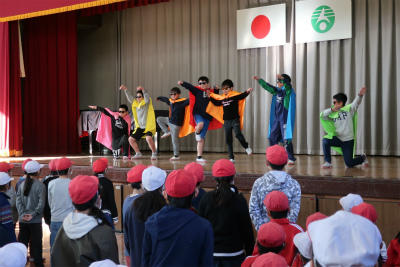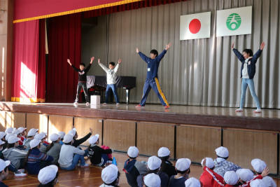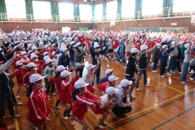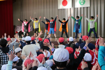 今朝の児童集会は、縦割り班ごとにチームとなり、先生方や上沖マンとじゃんけんを行いました。体全体でじゃんけんをするので「ボディじゃんけん!」です。楽しい集会で、みんな笑顔いっぱいになりました。