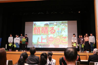 2月10日、土曜日、春日部市教育センターで、第11回よいこと運動広場が開かれました。今年は、上沖小が発表です。6年生の有志の皆さんが進んで参加し、上沖小のよいことを広めてくれました。堂々とした素晴らしい発表でした。