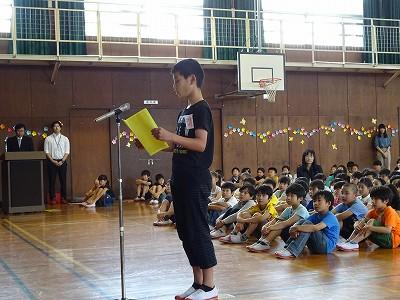 今年初めての児童朝会。4年生以上の各クラスの代表委員、各委員会の委員長が自己紹介を行いました。どの児童も堂々とした態度でしっかりと発表できました。まさに、下級生のお手本となる児童たちです。これからの活躍が楽しみです。