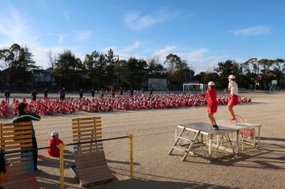 3学期、初めての運動タイム。運動委員会の児童による模範演技のあと、個人で3分間跳びと難しい技に挑戦しました。みんな一生懸命です!!!