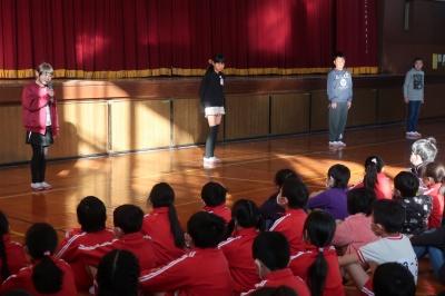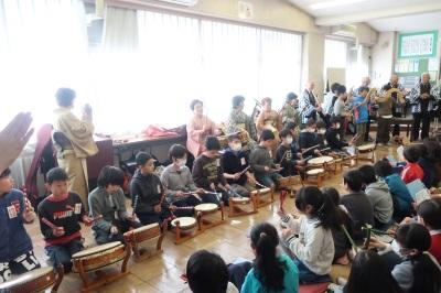 基華会社中の皆様に御来校いただき、4年生を対象に「ふれあい鑑賞会 ~民謡に親しもう~」を実施しました。日本各地に伝わる民謡に親しむと共に、自分での演奏も体験し、素晴らしい学習をすることができました。最後には、教室で給食を子供達と一緒に食べていただき、ありがとうございました。