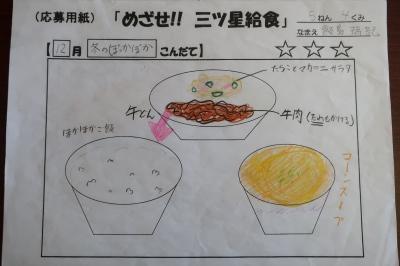 今日は、5年生の飯島瑞紀さんが考えたメニューです。体が温まるおいしい給食でした。