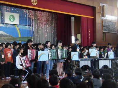 先週金曜日、送る会を行いました。1年生から5年生の、感謝の気持ちいっぱいの出し物とプレゼント、そして、6年生からも、お返しの感謝の気持ちのこもった「栄光への架け橋」の演奏と歌がすばらしかったです。みんなの心があったかくなる最高の送る会でした。