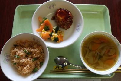 ハンバーグは一つ一つ手作りだそうです。上にのったチーズが溶け落ちないよう、ていねいにつくってくださいました。とってもおいしかったです。星形のにんじんもキラキラでした。ありがとうございます。