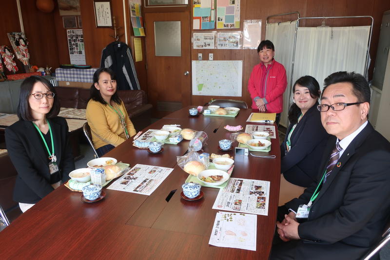 児童が考えた三ツ星給食献立。ラブラブパンやハートシチューなど、たくさんの工夫がいっぱいでおいしくいただきました。教育委員会学務課から来ていただいた皆様にご試食していただきました!