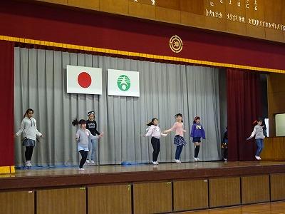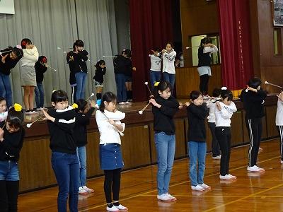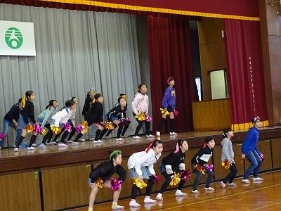 なわとびダンスクラブとバトンクラブによる演技がありました。今年度からクラブの回数が減ったため、短い練習期間でしたが、とても上手に演技していました。