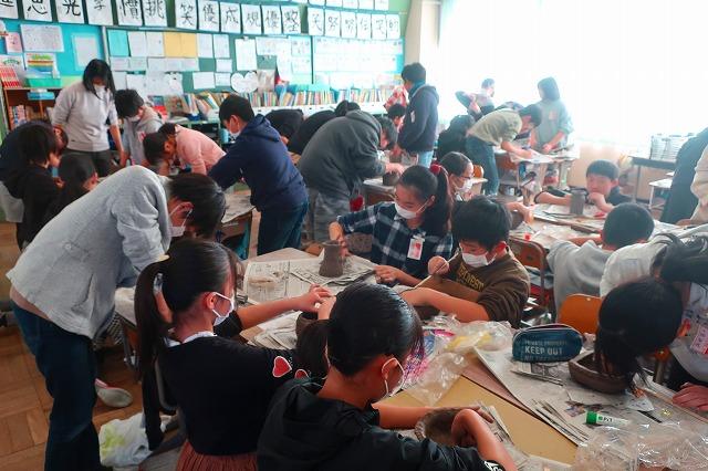 卒業まじかの6年生が粘土づくりに挑戦しました! 出来上がった作品は、色を付けて焼いて完成です! 出来上がりが楽しみ!