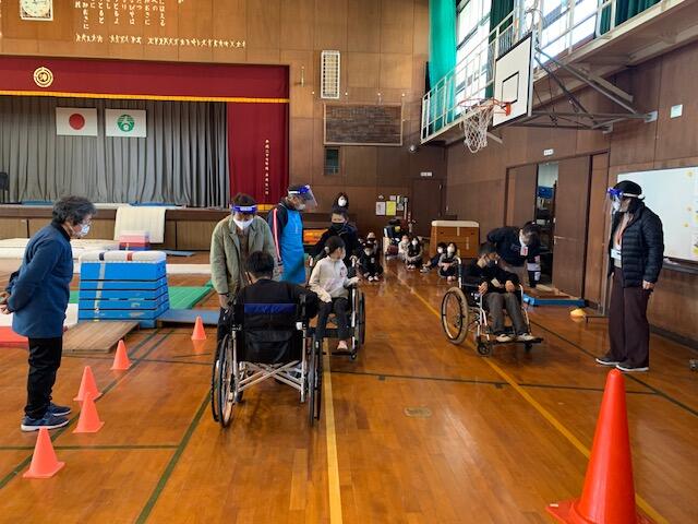 4年生が、総合的な学習の時間に「車いす体験」を行いました。ゲストティーチャー方々に教えていただきながら、車いすの乗り方や車いすの乗ったまま体育館のドアを開閉したり、机に向かって文字を書いたりしました。慣れない車いすを懸命に押す子どもたちは、真剣そのものでした。とても貴重な体験ができました。