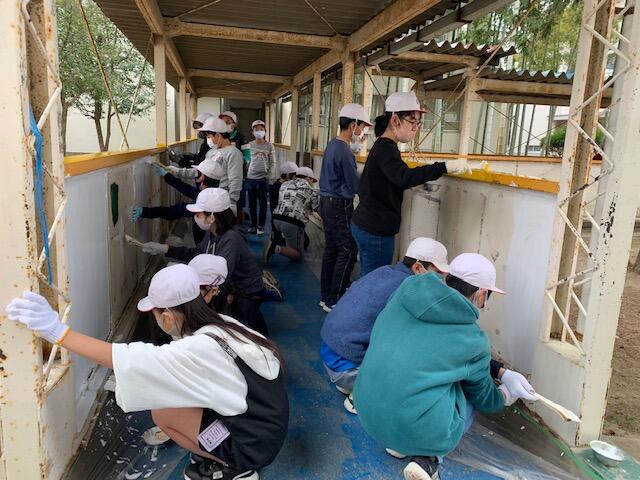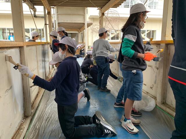 6年生が、ありがとう活動を行いました。その活動の一つに、渡り廊下のペンキ塗りがありました。汚れを落としてから、黄色や白などのペンキをはけを使って、きれいに塗ってくれました。先生方や在校生のみんなは、ここを通るたびに6年生を思い出すことでしょう。