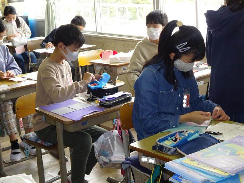 6年生が、ありがとう活動を行いました。今回紹介するのは、お世話になった先生方への心のこもったプレゼントづくりです。それぞれの先生方に、好みの色やデザインを聞きに来てくれ、子どもたちがイメージを膨らませ、作成してくれました。子どもたちが作ってくれたのは、ティッシュケースでした。添えてくれたメッセージもとても嬉しかったです。いつまでも、大切に使わせていただきます。ありがとうございました。