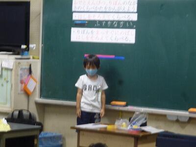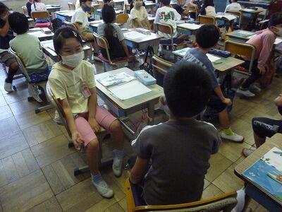 国語の物語を暗記して、役割演技で音読を行っていました。とても上手に言えていました。