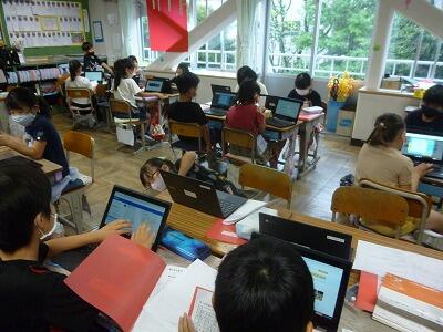最近、雨が続いていますが、子どもたちは元気に活動しています。1年生もタブレットを使って授業を行ったり、真剣に学習に向かっている姿が多く見られるようになりました。
