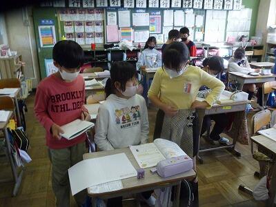 5年生の算数では、分からないところを先生に聞きに行ったり、友達に教えてもらったり全員が次のステップにいけるようがんばっています。