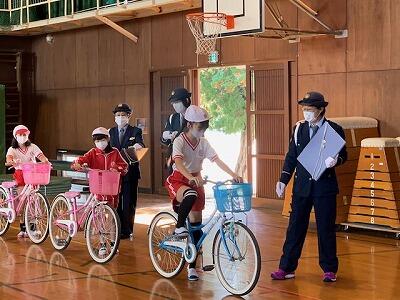 8日(月)・9日(火)に4年生が体育館で自転車免許講習会を行いました。警察官の方や交通指導員さん、市役所の方がいらっしゃって自転車の乗り方について指導いただきました。最近、自転車の飛び出しや事故が多く発生しています。しっかり学んだことを生かして安全に自転車に乗ってください。