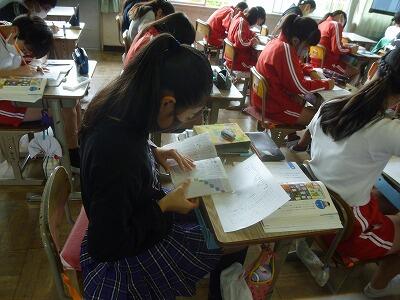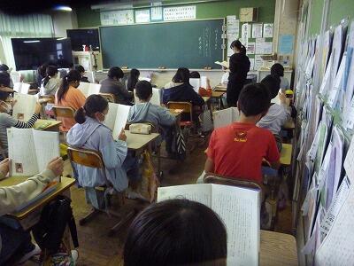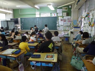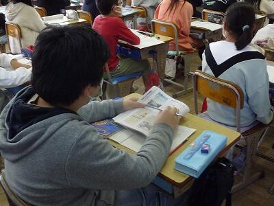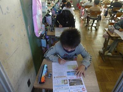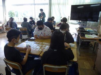 6年生は、図工の作品の鑑賞をおこなっていました。他のクラスの作品等にも触れ、お友達の作品の良さを鑑賞プリントに書くことができていました。