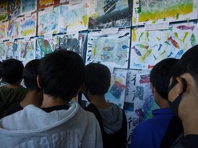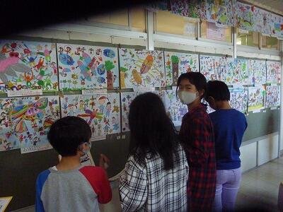 5年生は1~6年生の作品を見ながら鑑賞を行いました。低学年にもしっかりとコメントを入れ自分の感想や意見をしっかり入れている児童がほとんどで、さすが5年生!でした。