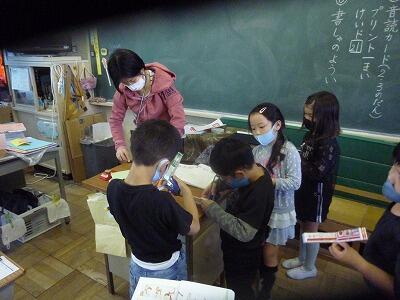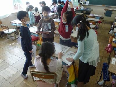 図工の鑑賞では、友達の作品をしっかり見て感想を一生懸命書いていました。