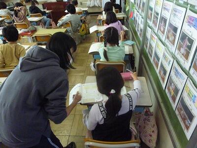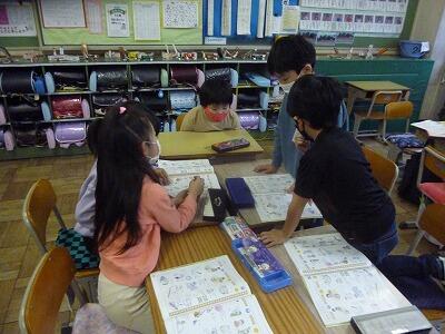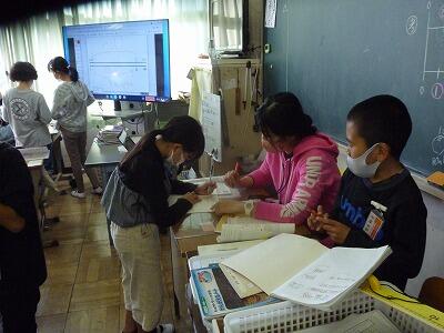 5年生の算数では、分からないところを先生に聞きに行ったり、友達に教えてもらったり全員が次のステップにいけるようがんばっています。