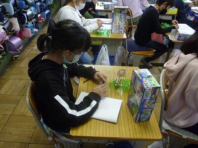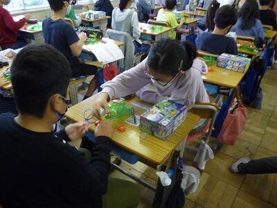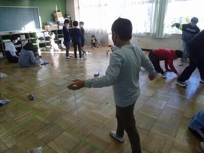 3年生がこま作りを行っていました。まっすぐきれいに回るためにはバランスが必要です。