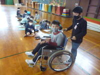 4年生の総合の学習で、「車いす体験」を行いました!どのように補助すべきか、自分が車いすに乗るとどのように感じるか等、実際の活動に取り組む中で学ぶことができました!また、消防署の方をお招きして、「応急処置訓練」を行いました。いざという時のために、実践の中で学びました。
