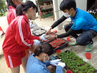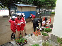 今日から、体力テストが始まりました!校庭では50m走とボール投げ、体育館では反復横跳び・立ち幅跳び・上体起こしを行っています!よい記録が出ると、とても満足そうにしていました。園芸委員会が、活動を一生懸命行っています。学校のために頑張る姿がとても素晴らしいですね。今回は、マリーゴールドとサルビアの植替えでした。上沖小学校が、花いっぱいの学校になるように頑張ってくれています。