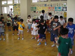みんなで息を合わせ動きを揃え、掛け声は大きな声で元気よく。