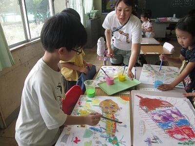 背景を塗ると、作品がぐっとよいものになり、こどもたちは、嬉しそうでした。