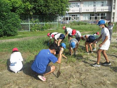 10月18日の運動会に向けて、こどもたちが自分たちの手で校庭の整備を進めています。
