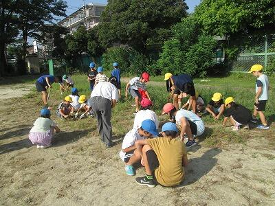 ボランティア委員会が、毎朝、校庭の草とりをしてくれています。