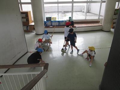 Pタイム(たてわり活動)で、清掃を行いました。