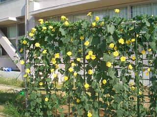 校内では、4年生が育てているヘチマが色鮮やかな黄色い花をいくつも咲かせています。