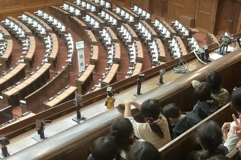 社会科見学で、国会議事堂の見学と科学技術館でのグループ活動を行いました。