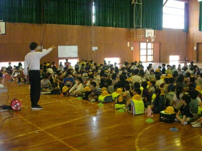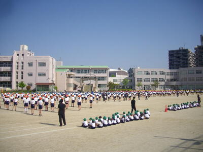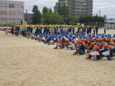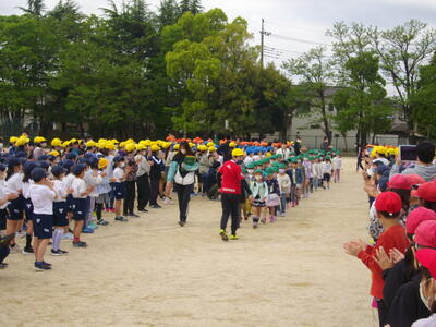 新入生が入学して1週間、初めて全校児童が校庭に集まりました。
