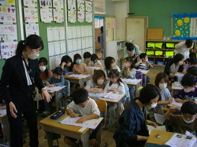 登校の様子をご覧いただき、さらに各学級の様子もご覧いただきました。